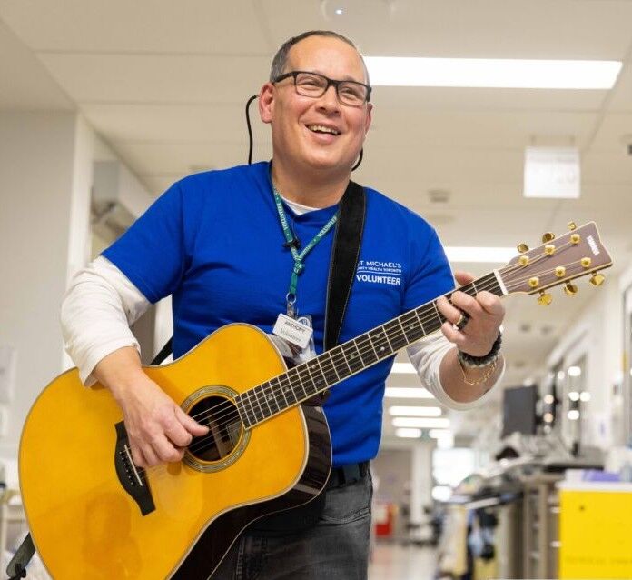 Anthony also volunteers in the Palliative Care Unit at St. Michael’s Hospital in memory of his mother, where he can share his love of music that he shared with his mother. In the Palliative Care Unit, Anthony is privileged to be able to play his guitar and provide peaceful and comforting music to the patients and their families.